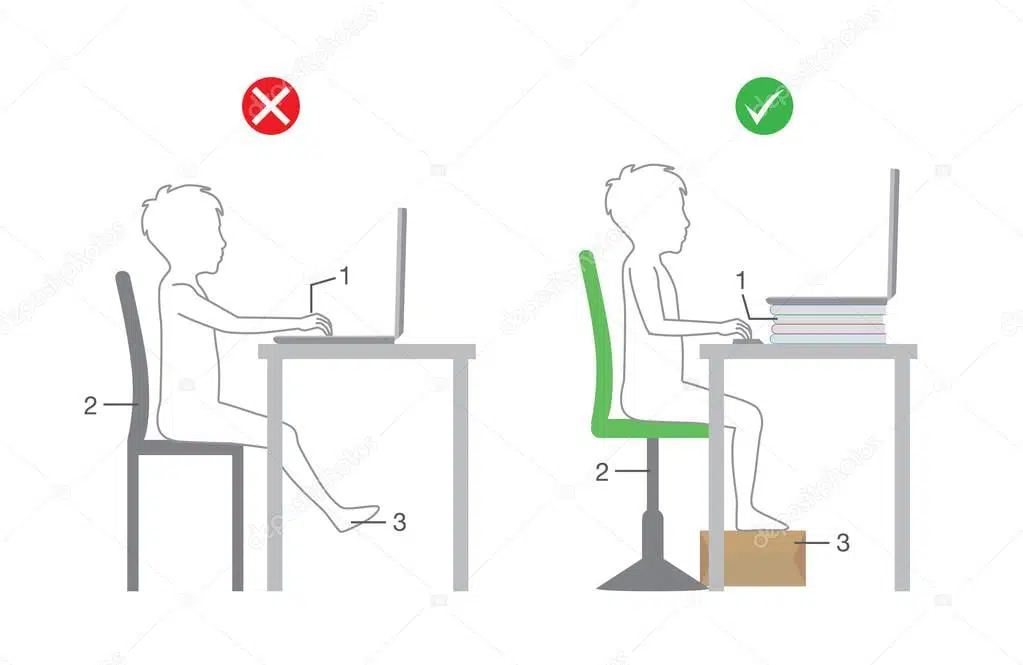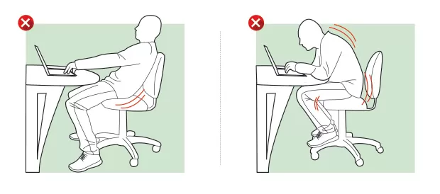 Evite se curvar ou inclinar para frente enquanto trabalha ou estuda.